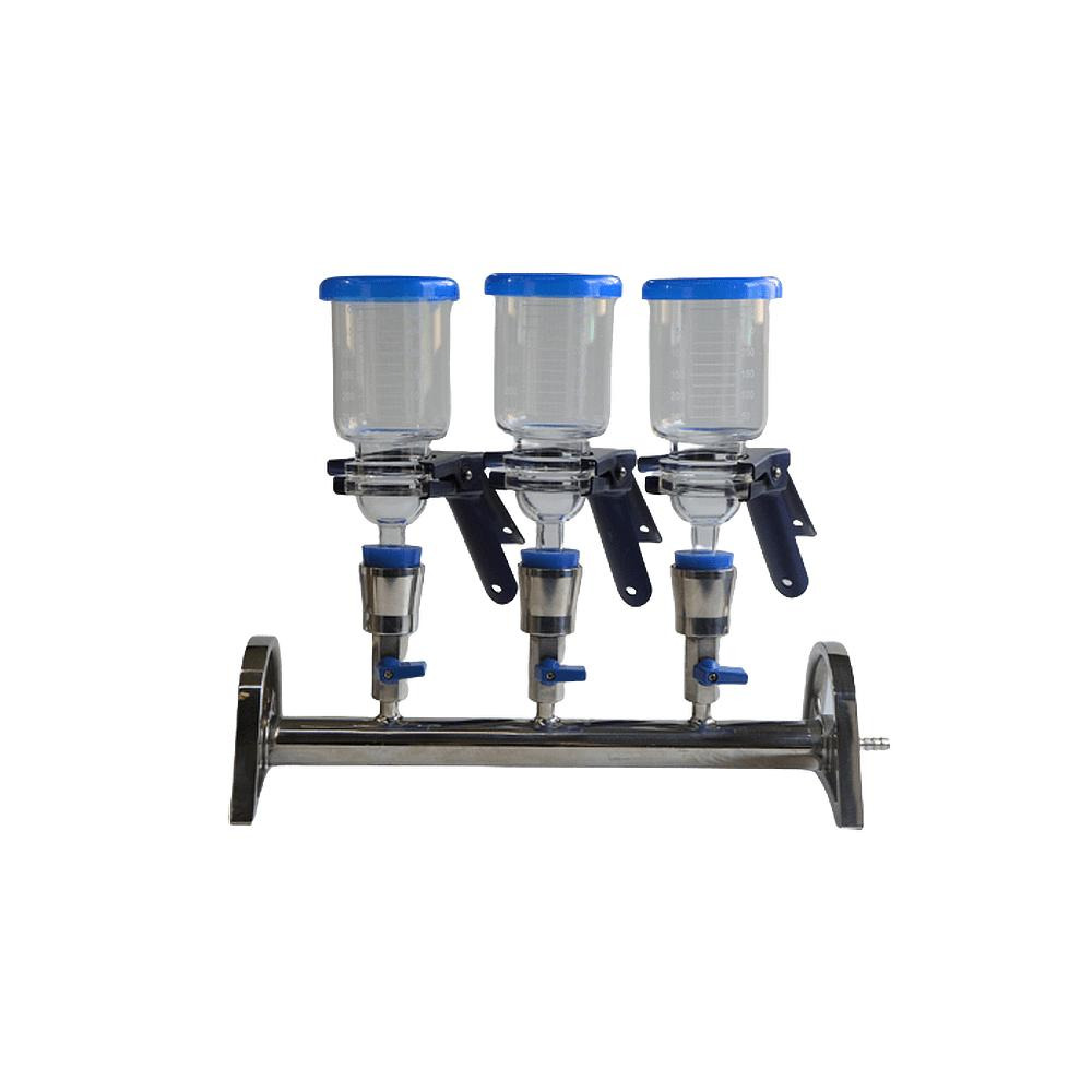 MS 多聯(lián)過濾器是專門為同時(shí)間測定多個(gè)樣品設(shè)計(jì)的。多聯(lián)過濾系統(tǒng)可同時(shí)進(jìn)行多(單、三、六)個(gè)樣品過濾,只需一個(gè)真空氣源就可以完成全部操作,節(jié)省大量的時(shí)間,方便快捷。多聯(lián)支架優(yōu)先已做拋光處理的316L材質(zhì)不銹鋼,能耐大多數(shù)腐蝕性液體,與玻璃或不銹鋼換膜過濾器配套使用。提高工作效率和試驗(yàn)條件的一致性,從而達(dá)到實(shí)驗(yàn)結(jié)果的準(zhǔn)確度。并且該過濾系統(tǒng)可以在高溫操作(180℃),尤其適用于熱過濾條件的試驗(yàn)。
